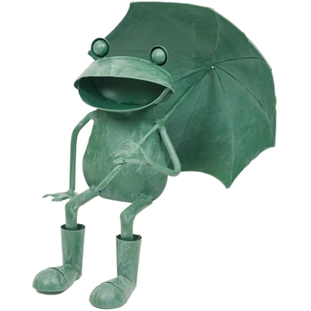 村田屋産業(Murataya Sangyo) 置物 ブリキ オブジェシリーズ カエル ビッグアンブレラ座り グリーン 20×15.5×17cm 4897