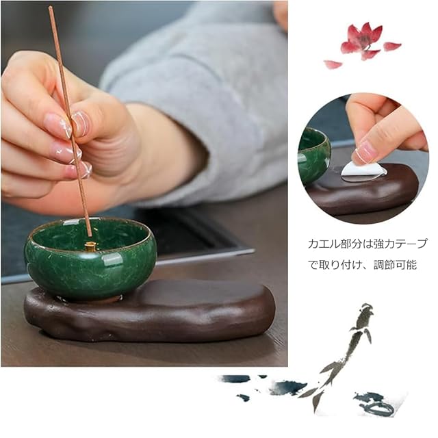 商品名:HIGHAWKお香立て 香炉 スティック線香・渦巻き線香両用 カエル かわいい 陶器 置物 書斎 瞑想 睡眠 インテリア(カエルA)