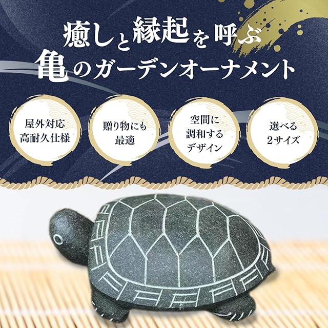 【癒しと縁起を呼ぶ亀のガーデンオーナメント】可愛らしい姿で庭や玄関に癒しを届けるかめのオブジェ。古くから縁起物とされる亀は、長寿や繁栄の象徴としても親しまれ、空間に優しい雰囲気と運気をもたらします。