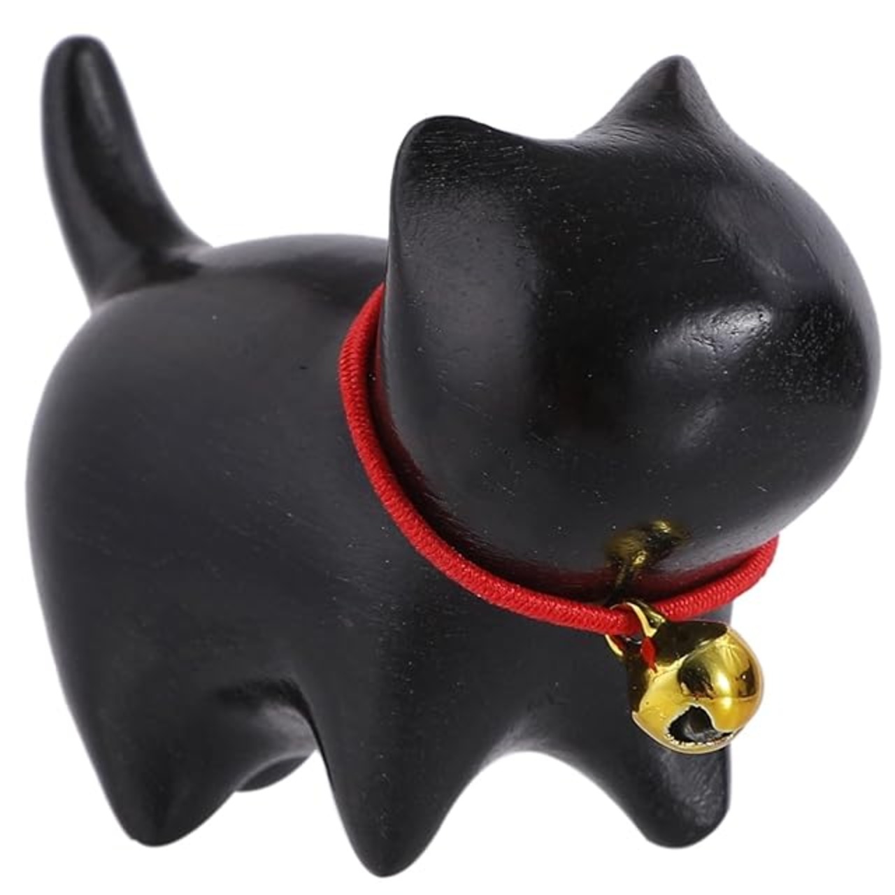 商品名:ルボナリエ 木製 猫 置物 招き猫 緑檀 黒檀 (ブラック)
