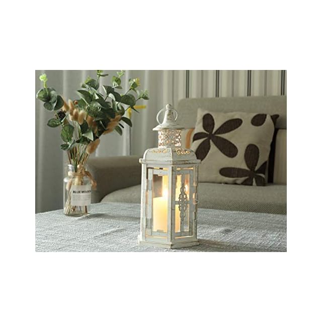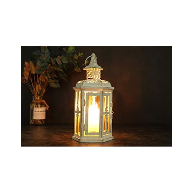 JHY DESIGN キャンドルホルダー 高さ25cm アンティーク キャンドルランタン おしゃれ 間接照明 蝋燭立て ロウソク ランタン インテリア 庭園 部屋 オフィス バーなど屋外屋内 装飾 (白