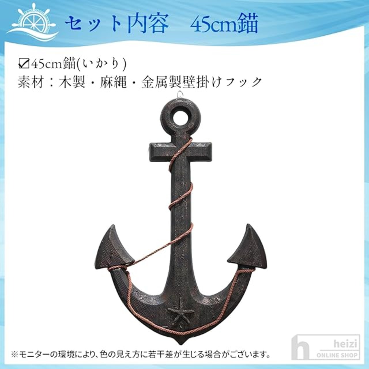 【セット内容】45cm錨(いかり) 【素材】木製・麻縄・金属製壁掛けフック ※モニターの環境により、色の見え方に若干差が生じる場合がございます。