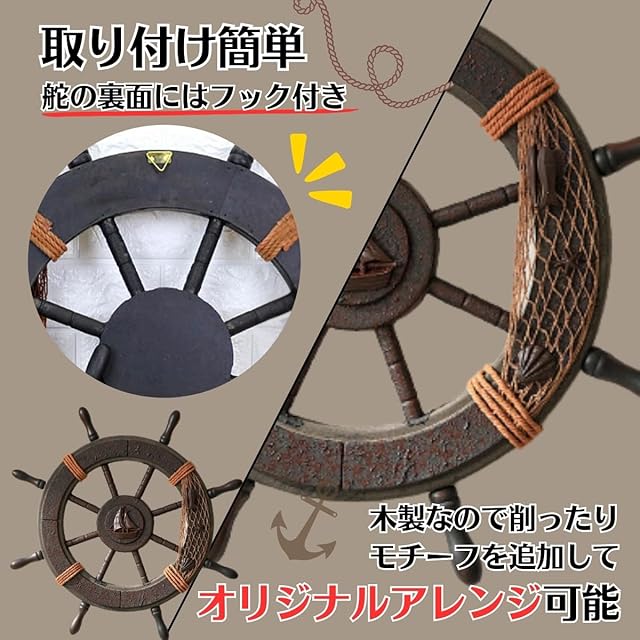 【簡単設置×究極のカスタマイズ性】 裏面の頑丈な金属製フック付きで壁掛けが簡単です。耐久性の高い木製素材は、塗装やサンディング、モチーフを追加したりと、オーナーの創造性を刺激する自由なカスタマイズが可能で、オリジナルのオーナメントを作成できます。45cmの存在感あるサイズは、どの部屋にもインパクトを与え、maritime なスタイリングを完璧に演出。取り付け後のメンテナンスも簡単です。