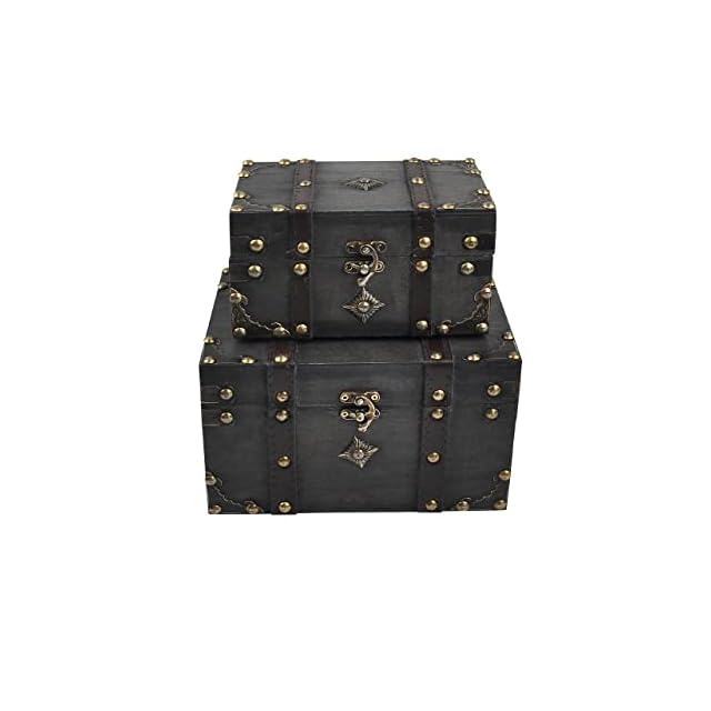 ELIZO 2個収納ケース・ボックス 木製収納用品 ジュエリー収納 木製装飾ボックス アンティークスタイル収納ボックス 大小セット (301-Combo2)
