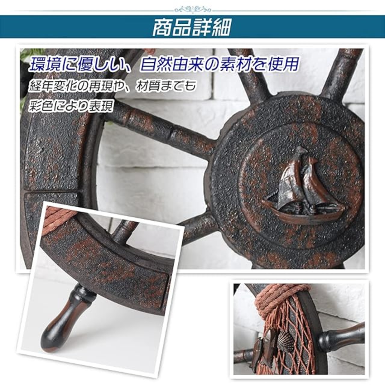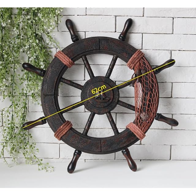 商品名:木製 舵輪 錨 アンティーク 海賊 インテリア 御洒落 船 オブジェ レトロ 舟 樽 ガーデニング 操舵 かじ 船舵 船ハンドル アンカー 海賊船 大航海時代 (L, 舵輪)