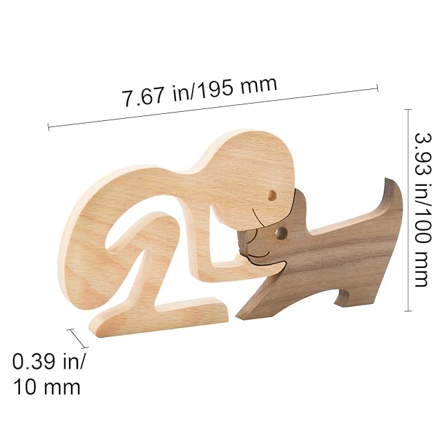 Enkrio 子犬 木製彫刻 木彫り ウッド装飾 動物 犬の彫刻 ハンドメイド 犬の置物 木製の工芸品の彫刻 ペット愛好家 オブジェ クラフト置物 インテリア 木の雑貨 オーナメント 記念ギフト (男性と犬)