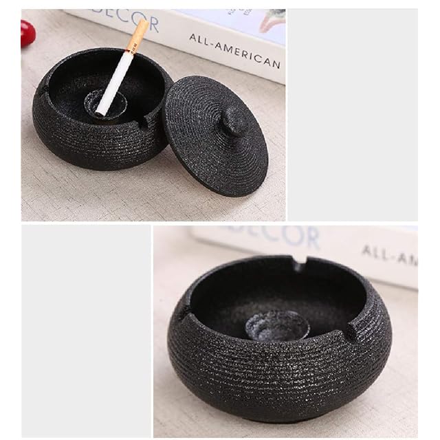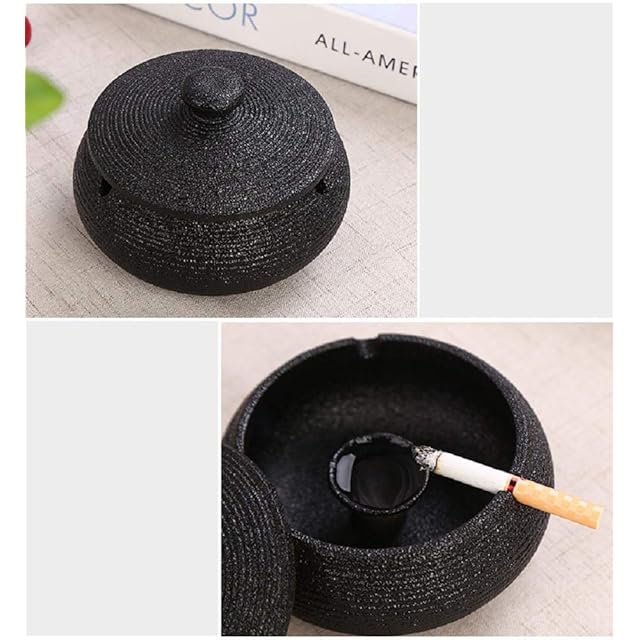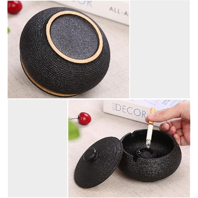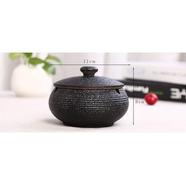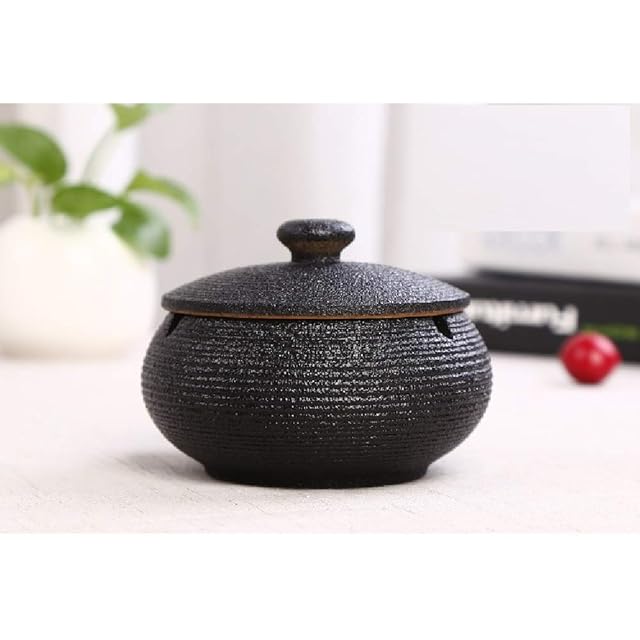 商品名:【神話広場】 和風 灰皿 ふた付き 陶器 インテリア アンティーク 卓上 旅館 料亭 ホテル 業務用 黒