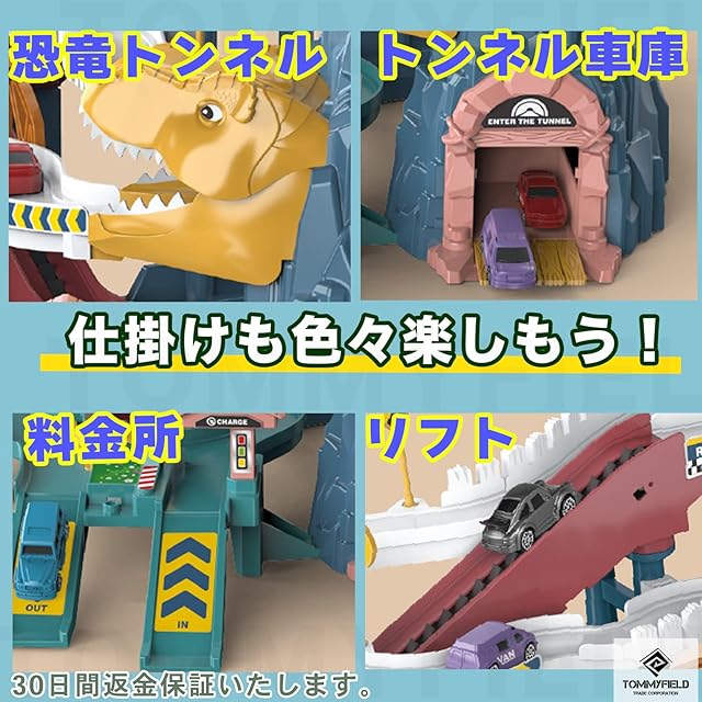商品名:TOMMYFIELD レール おもちゃ 車 自動 組み立て 恐竜 ミニカー レールセット