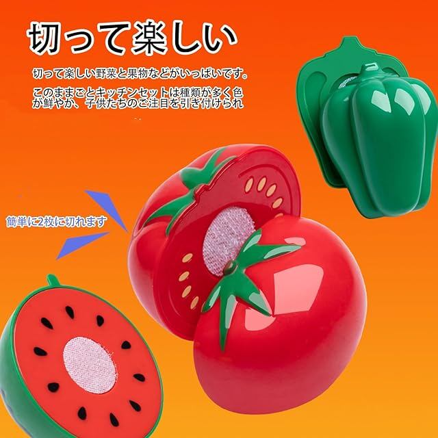 【豪華84点セット内容】食材種類が豊富で、楽しく遊びながら食育を!本物の食物のように、果物、野菜、揚げた料理、調理器具、圧力鍋、お鍋、フライパン、ケットル、食パン、飲み物、などいろいろあります。日常生活やダイニングシーンを再現し!お子様に料理の楽しみを体験させて、お母さんは子供が台所に入ることを心配無し!