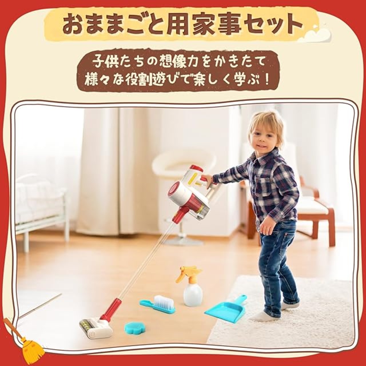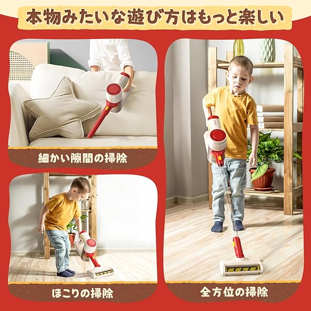 【ホンモノみたいな除機玩具】この掃除機おもちゃは、リアルな音楽が付いており、子供たちの注意を引きやすくなっています。また、電動式掃除機の操作も子供たちにとって簡単になっています。さまざまなノズルの組み合わせによって、掃除の効果や楽しさを最大限に引き出すことができます。
