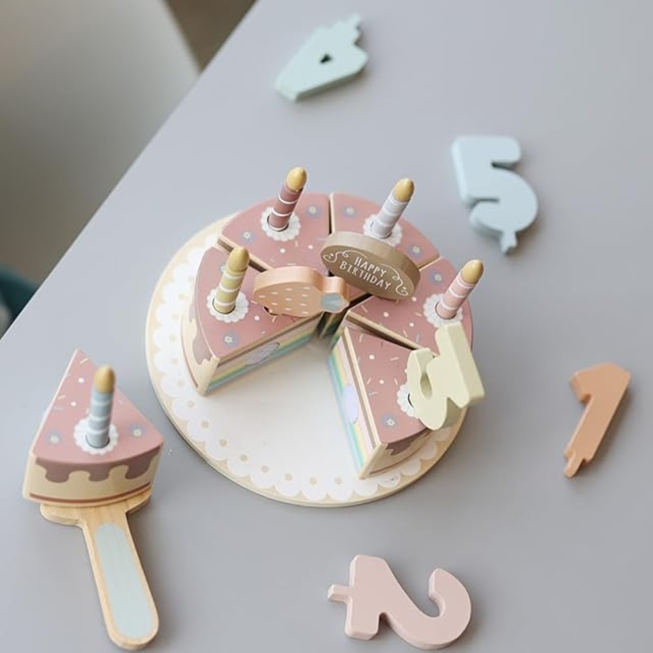 プレイルームや、ディスプレイにも映え取り外し、できるパーツでアレンジ可能。 ケーキサーバー、ロウソク、年齢プレート、お飾りが付属しており、飽きずに、デコレーションを楽しめる工夫がされています。