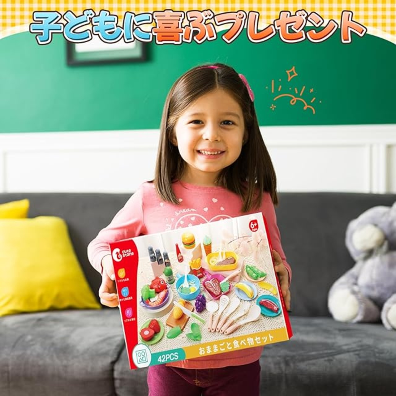 Cute Stone おままごとセット 知育玩具 42点セット おもちゃ 子供 DIY 豊富な食材 お肉と野菜 調理器具 切る遊び 親子遊び ままごと ごっこ遊び 女の子 男の子 誕生日プレゼント