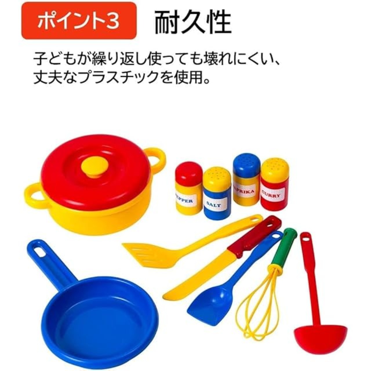 【セット内容】キッチンセンター本体/シンク×1個/両手鍋(フタ付き)×1個/フライパン×1個/食洗器のかご×1個/コンロ板×2枚/ダイヤル×5個/引き出し持ち手×3個/シールシート×1枚/おたま×1個/ヘラ×1個/フライ返し×1個/泡立て器×1個/包丁×1個/調味料入れ×4個 ※各パーツの色はアソートの為、指定はできません。
