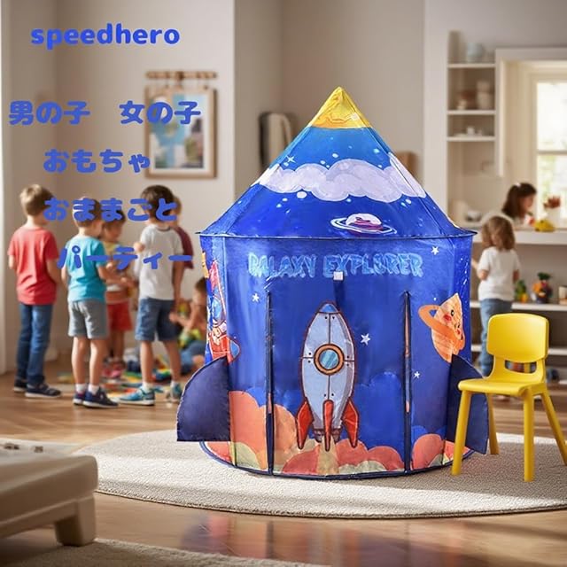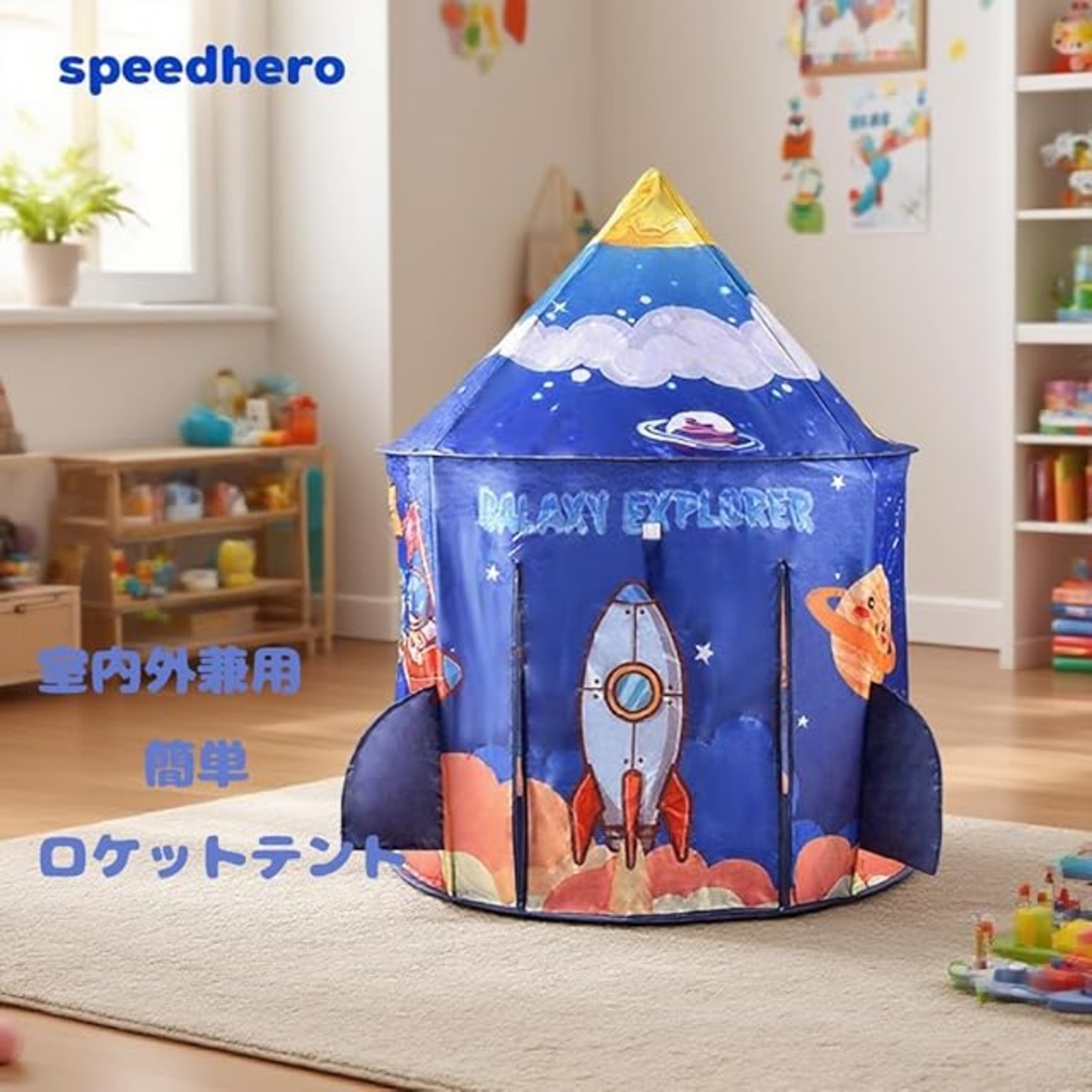 商品名:キッズテント 車式テント 家 室内外兼用 キャンプテント おままごと 知育玩具 親子遊び ボールプール 収納袋付き ワンタッチ開閉 子供用プレイハウス 折りたたみ おしゃれ 室内外遊具 男の子 女の子 おもちゃ パーティー ギフト 贈り物 (ロケットテント(羽付き))