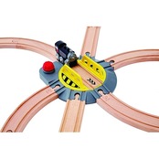 レール遊びを盛り上げる、転車台です。つまみをまわすと台が回転し、電車の向きを変えることができます。<br>ハペのレールシリーズといっしょに楽しめるので遊びの幅が広がります。