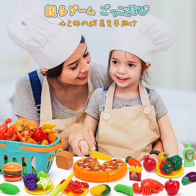 【知育に良さそう】子どもはおままごと遊びを通して生活の中の野菜、果物などを知り、色を見分けます。大人の言葉のまねをして、子供の右脳開発、手眼調和、認識能力、創造力などを向上させるだけでなく、集中力、思考力なども高めます。また、大人も子供と一緒にごっこ遊びしたり、食材を切ったり、いい親子思い出を作ります。