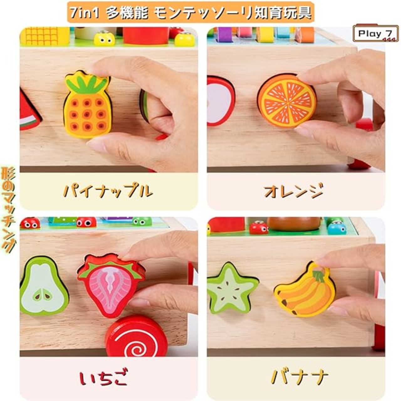 商品名:Bajoy 7in1 モンテッソーリ 教育玩具 型はめ 形合わせ はめ込み 指先を使う釣りおもちゃ 紐通しおもちゃ おままごとおもちゃもできる多機能木製おもちゃ 知育玩具 ランキング 2 3 4 5 6歳 女の子 男の子 クリスマス 誕生日プレゼントギフト (釣り)
