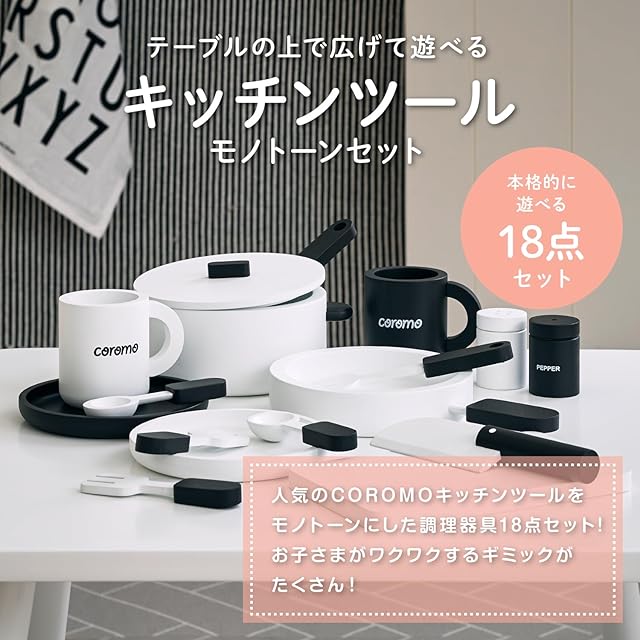 商品名:スマート・アイ(smart-i) キッチンツール coromo(コロモ) モノトーン 18点セット ままごとセット