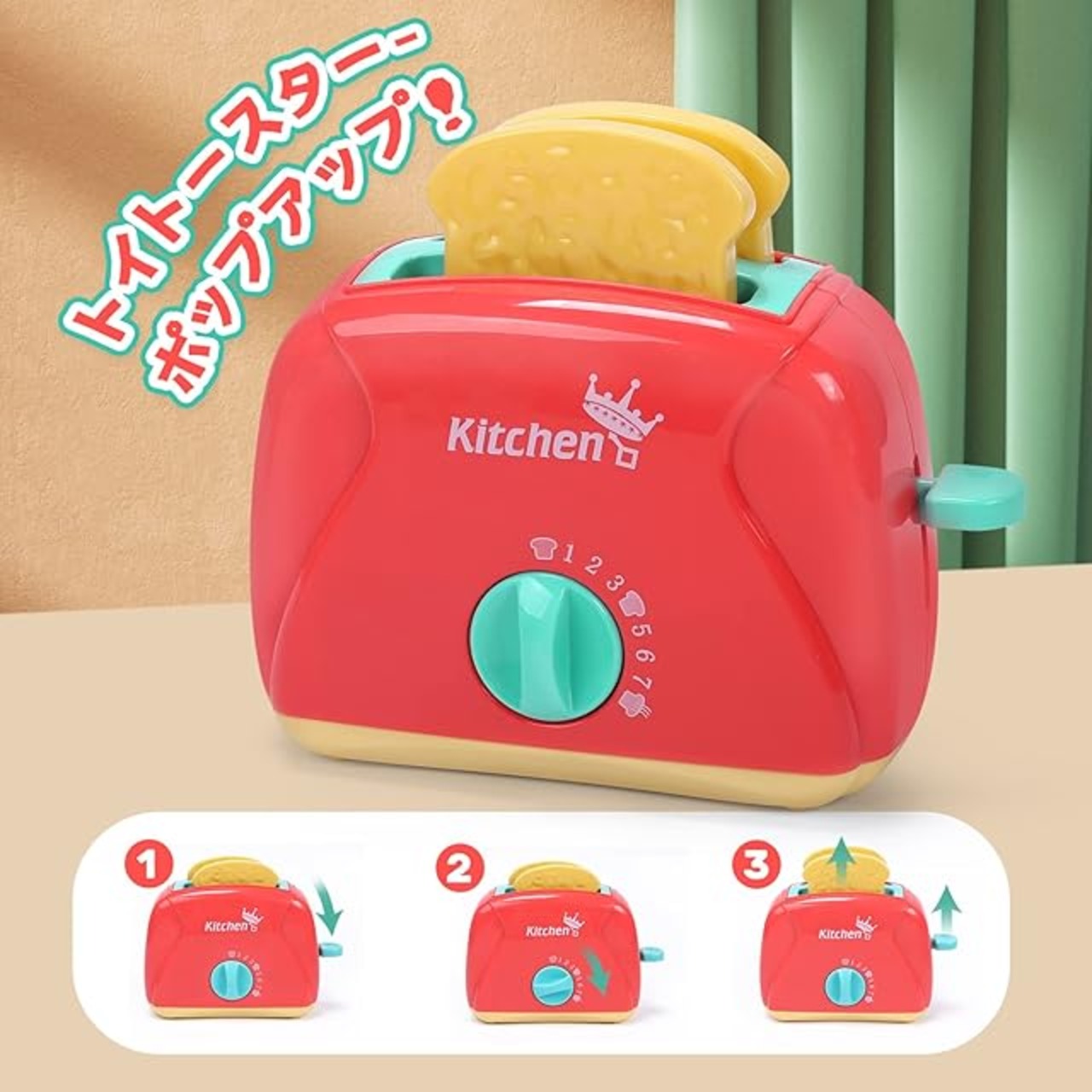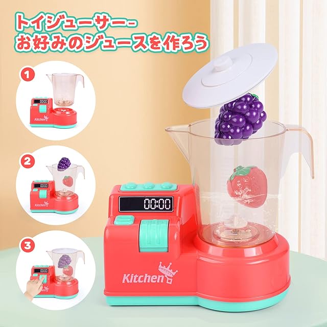 【リアルなトイ家電】ジューサー、ミキサー、トースター三種類のトイ家電を含めます。本物のより、音とライトが出て、様々な動作もあります。子どもたちがママと一緒にジュース作るの楽しさを体験できます。