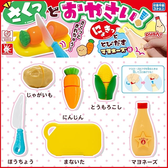セット内容:お野菜(じゃがいも・トウモロコシ・ニンジン)、マヨネーズ、まな板、包丁