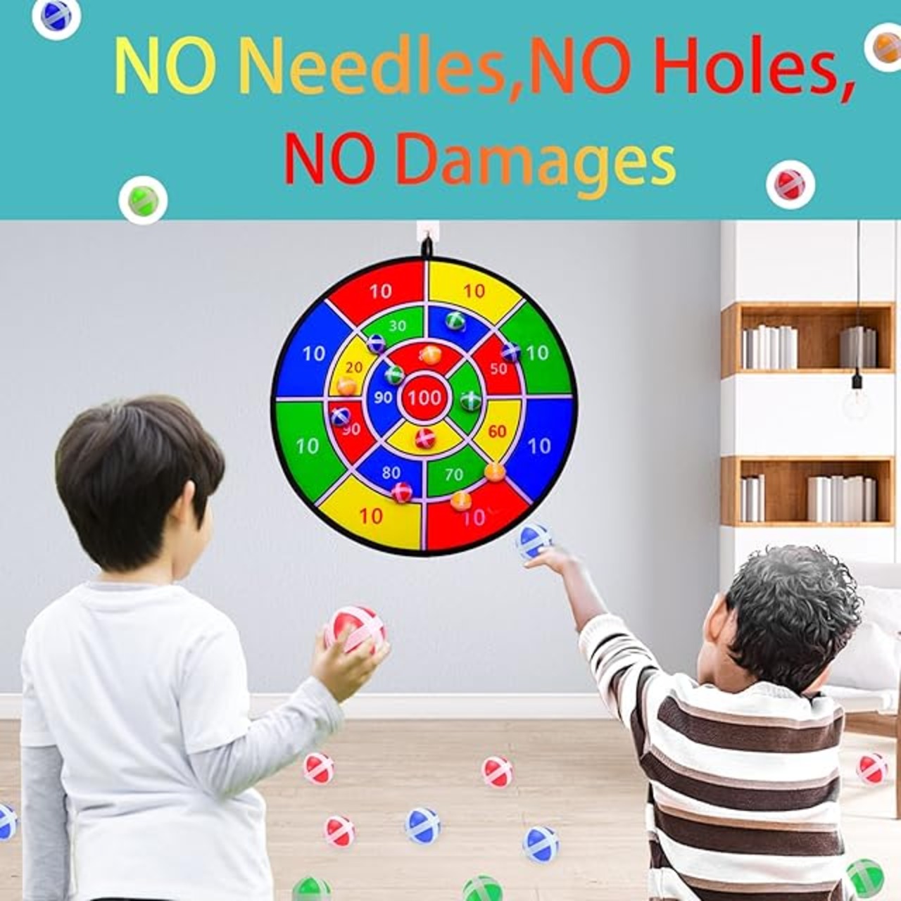高品質のダーツゲーム:この子供用ダーツボードは高品質の柔らかい生地で作られており、耐久性があり、粘着性のあるボールは強い粘着性がありますが、手を傷つけません。 スチールチップダーツと比較して、当社の子供用ダーツボードは子供を保護したり、壁を傷つけません。 子供に最適な実用的なゲームです。