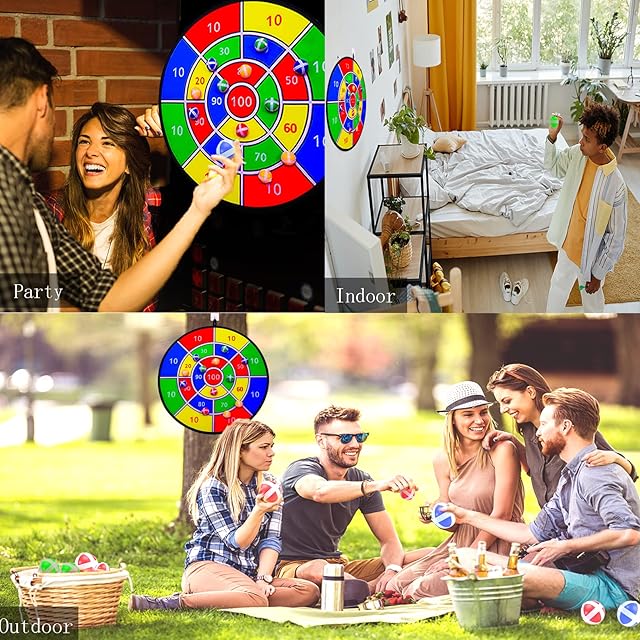 28インチ 子供用ダーツボード 大型子供用ダーツボード 粘着ボール16個付き フック2個 屋内屋外ダーツボードゲーム キッズ楽しいパーティーダーツボードセット キッズダーツボードパーティーゲーム 3歳~12歳の男の子用