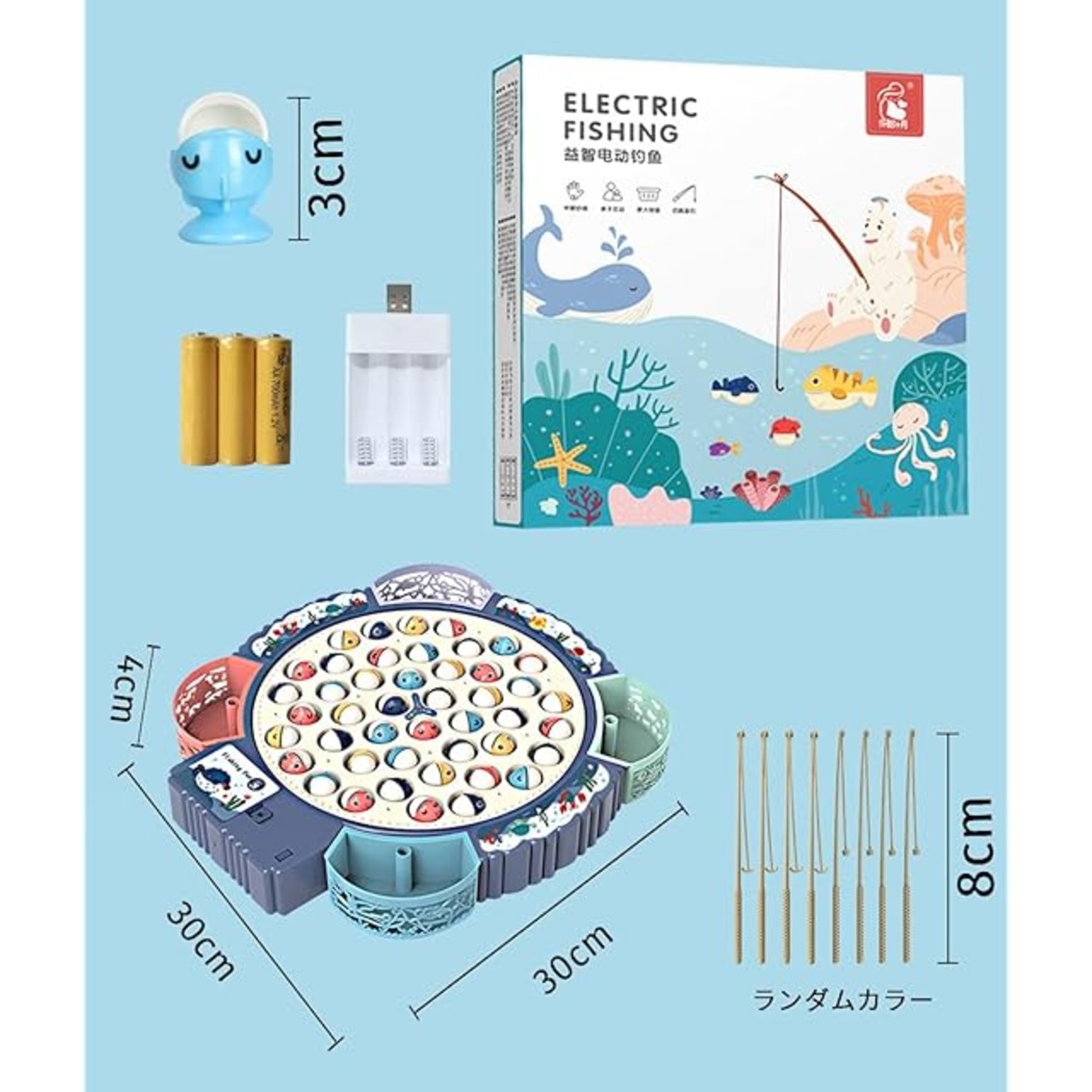 商品名:Absdefen 電動釣りゲーム くるくる魚釣り かわいい魚 多機能玩具 フィッシング おもちゃ 音楽回転 ミュート可能 遊び 子供 人気 誕生日 贈り物 入園お祝い クリスマス プレゼント (充電式(ブルー))