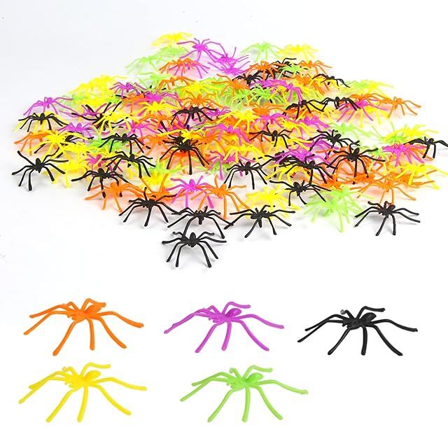 セット内容:黒の蜘蛛30個+オレンジの蜘蛛30個+紫の蜘蛛30個+緑の蜘蛛30個+黄色の蜘蛛30個、合計150個。