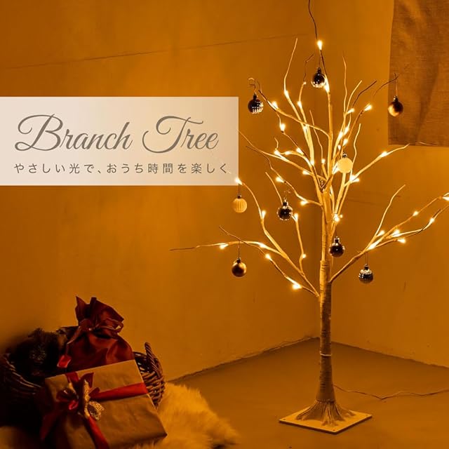 商品名:ブランチツリー 白樺 ツリー 北欧 枝ツリー【まるで本物!夜のお部屋のインテリアに最適!】 クリスマス インテリア イルミネーション ライト (白樺 90㎝)