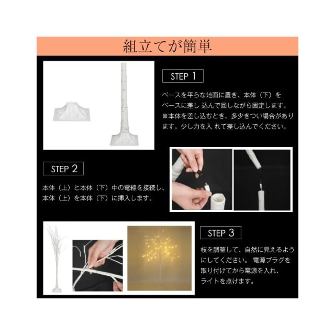 商品名:BTM クリスマスツリー ブランチツリー 120cm 温暖色 白樺 枝ツリー ライト LED イルミネーション ブランシェ 木 北欧 インテリア スリムツリー