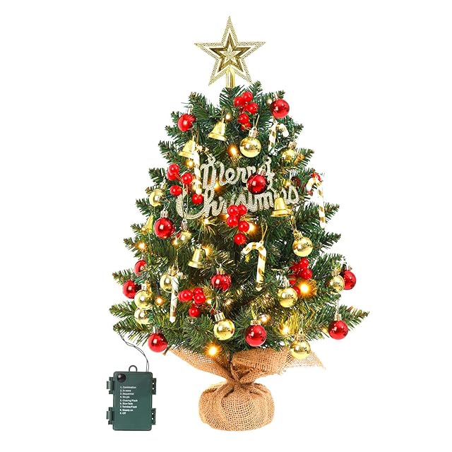 クリスマスツリー オーナメント付き 45点セット 卓上 SVNVIOZ グリーン ツリー 50cm ミニクリスマスツリー LEDライト付き 枝数90tips おしゃれ 北欧 高級 高濃密度 組立簡単 リアル クリスマスツリー