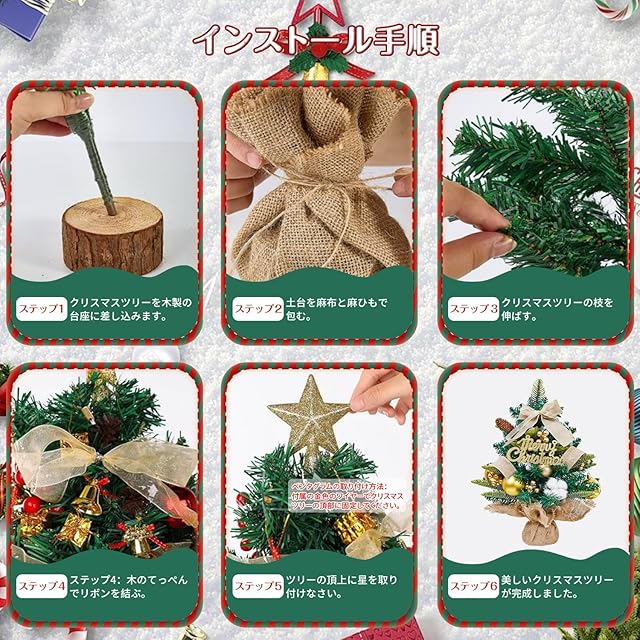 【どんな場所にもぴったり】このかわいらしいテーブル用クリスマスツリーは、クリスマス気分を盛り上げてくれます。デスク、ダイニングテーブル、オフィスデスク、窓辺、またはショップの窓辺などに置けば、クリスマスを明るく彩り、ご家族やゲストに素晴らしいクリスマスの思い出を残すことができます。また、ご家族や友人へのクリスマスプレゼントとしても最適です。