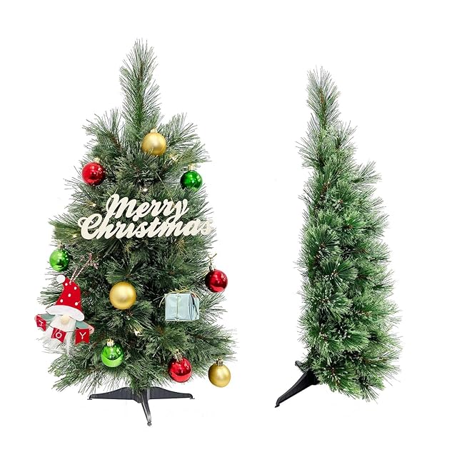 クリスマスツリー ハーフ ミニ ツリー 60cm 卓上 装飾 オーナメント付 簡単 組み立て3分 LED ライト付 おしゃれ かわいい 省スペース ナチュラル リアル 組立簡単 収納便利 インテリア用品