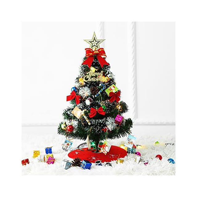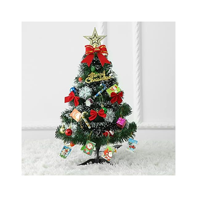 商品名:クリスマスツリー 卓上 ミニクリスマスツリー クリスマスプレゼント オーナメントセット LEDライト付き 組立簡単 コンパクト収納可能 60cm 50cm (グリーン 60CM)