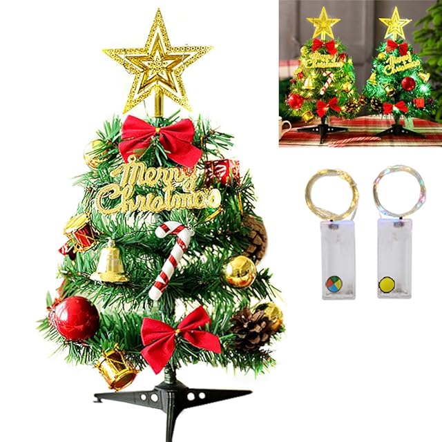 クリスマスツリー 卓上 ミニ ツリー LEDライト付き かわいい 飾り 電飾付き クリスマスグッズ インテリア 用品 クリスマスプレゼント 30cm 50cm 組立式 (30CM 暖かい&彩色ライト)