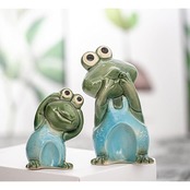 高品質セラミックで作られた、愛くるしいカエルの置物です。 繊細なカエルのデザインが特徴です。お庭や玄関先のアクセントになる小さな置物・オブジェです! アートクラフト、繊細な表面、独特な風合いが魅力点です。 高品質セラミックで作られて、頑丈で色あせしません。 カエルは古来よりお金がカエル・福がカエル・無事にカエル など幸運が帰って来る意味があり、縁起のいい生き物として愛されています。3匹はそれぞれ独立しているので、個別に置いていただけます。