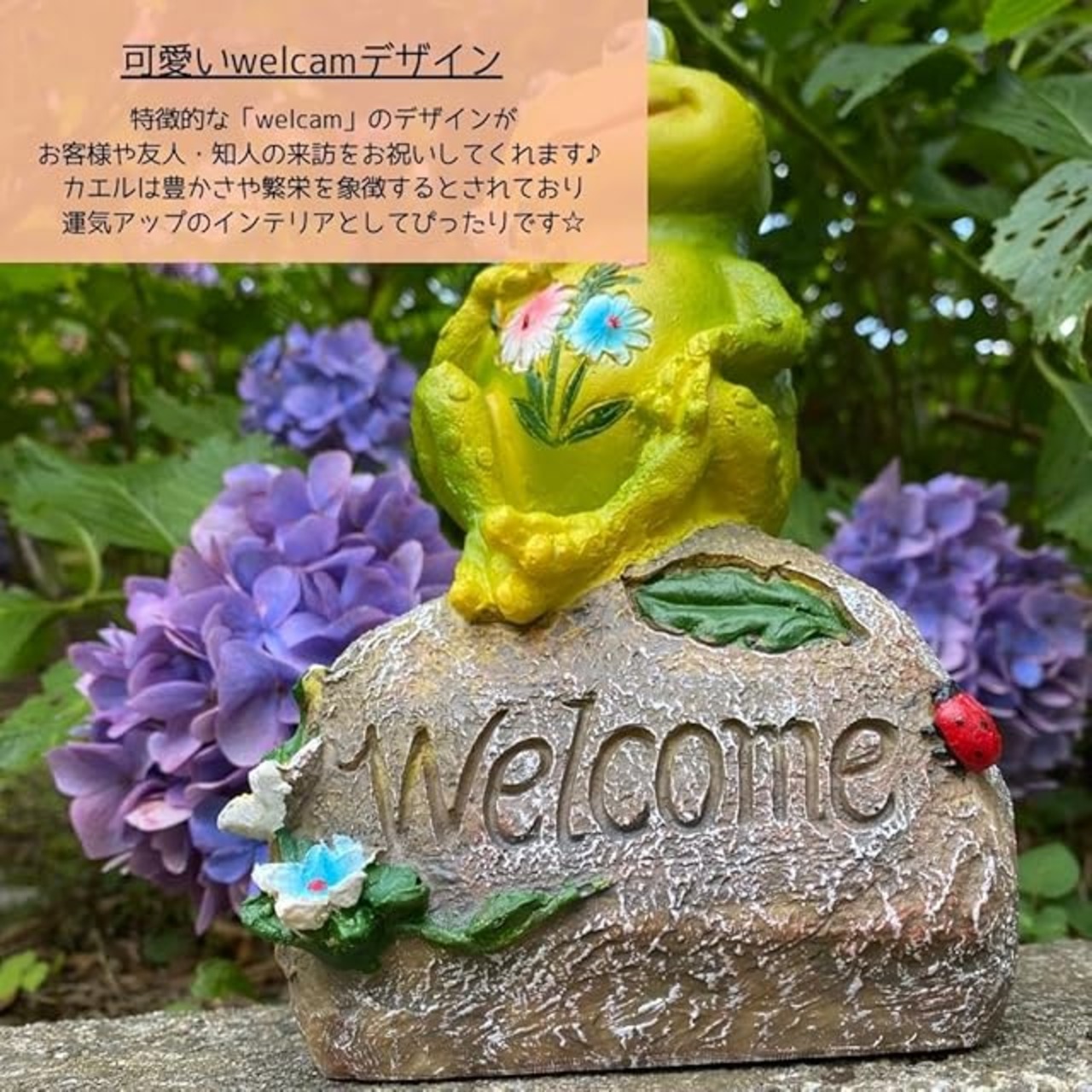 【使用感】シンプルでスタイリッシュな雑貨!家の玄関ポーチ、玄関アプローチに置くことで外出前や帰宅後の癒しになってくれるカエルの置物です。 お庭のオーナメントやお部屋のインテリア、オブジェにガーデニングオーナメントなど色々なシーンのアイテムとしてご使用いただけます! カエルは豊作や雨を降らす神の使いであったり、一度にたくさんの卵を産むため子孫繁栄の象徴でもあります。「無事帰る」「福帰る」「お金が帰る」ということで、縁起のいい生き物とされています。玄関やインテリアなどに置く運気アップのアイテムとしてぴったりです。 屋内では玄関やリビングなどのインテリアとしてもオススメです。ガーデニング等での屋外での使用にも対応してます。