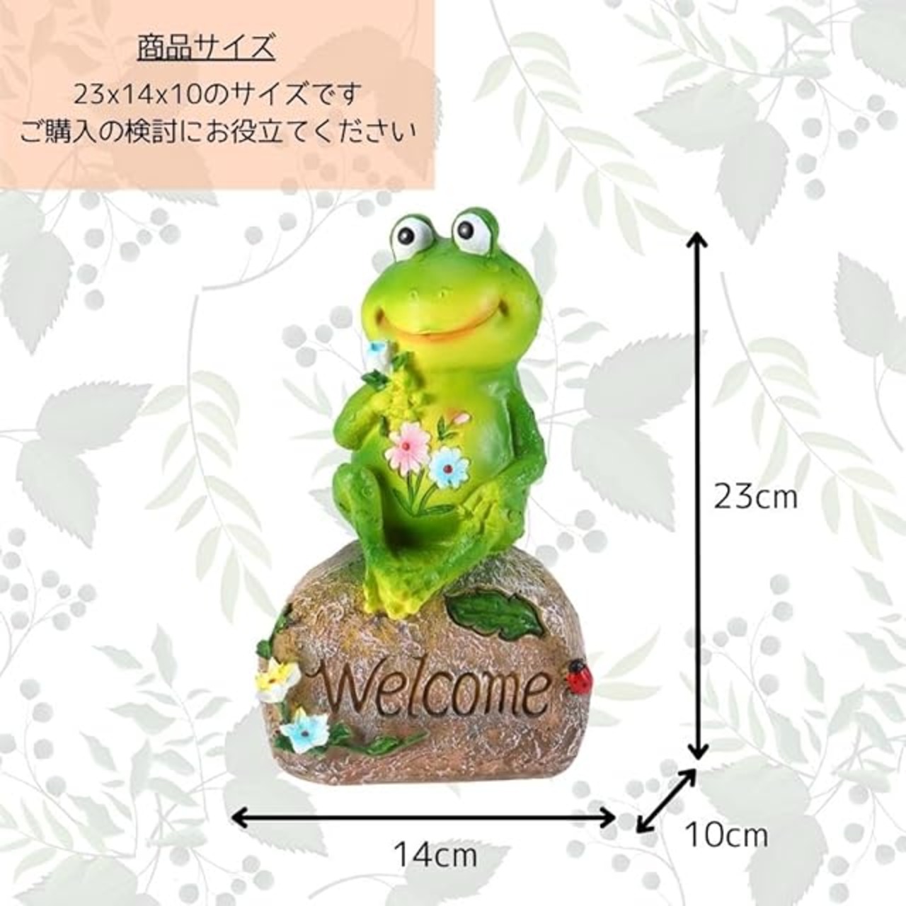 【使用感】シンプルでスタイリッシュな雑貨!家の玄関ポーチ、玄関アプローチに置くことで外出前や帰宅後の癒しになってくれるカエルの置物です。 お庭のオーナメントやお部屋のインテリア、オブジェにガーデニングオーナメントなど色々なアイテムと組み合わせれば楽しく注目の的に!勿論、そのままおいても可愛くて癒されてしまいます。 カエルは豊作や雨を降らす神の使いであったり、一度にたくさんの卵を産むため子孫繁栄の象徴でもあります。「無事帰る」「福帰る」「お金が帰る」ということで、縁起のいい生き物とされています。玄関やインテリアなどに置く運気アップのアイテムとしてぴったりです。 屋内では玄関やリビングなどのインテリアとしてもオススメです。ガーデニング等での屋外での使用にも対応してます。<br><br> 【贈り物としても】動物好きの方へのお誕生日プレゼントやクリスマスプレゼント、ホワイトデーのお返しやバレンタインデーなど特別な記念日にお勧めします。 また、ご自分へのご褒美や大切な方への感謝の気持ちを伝える贈り物としてたくさんの方々にご愛用頂いています。 キュートでリアルな動物雑貨として、インテリアやオブジェとして、大人気のシリーズです。<br><br> 【品質】樹脂製なので軽量・耐久性がある作りになっています。悪天候で色あせしにくいようにコーティングで保護されています。雨にさらされても優れた品質と耐久性があるので問題ございません。 表面コーティングは製品を保護し、耐久性、耐候性、耐日光性、防水性を備えています。 細かいところまでしっかりとデザインされておりドールハウスにもぴったりです。<br><br> 【幅広い用途】:家の玄関ポーチ、玄関アポローチのデコレーションとしても、ベランダー、バルコニー、ガーデニングステージ、ウッドデッキ、芝生、ガーデニング/庭園シーン/ドールハウスのアクセサリー、家の装飾など、さまざまなシーンに適用できます。<br><br> 【返品について】※商品開封後でも商品到着後30日以内であれば商品代金(税込)および国内返を返金します!<br><br>