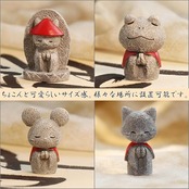 優しい表情で手を合わせる動物をモチーフにしたミニ地蔵です。犬、カエル、ネズミ、きつねの4種類からお好きなデザインをお選びいただけます。