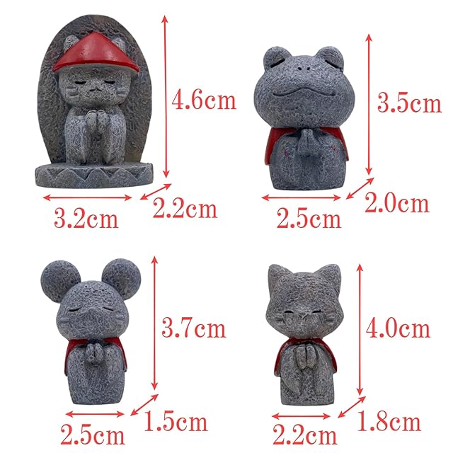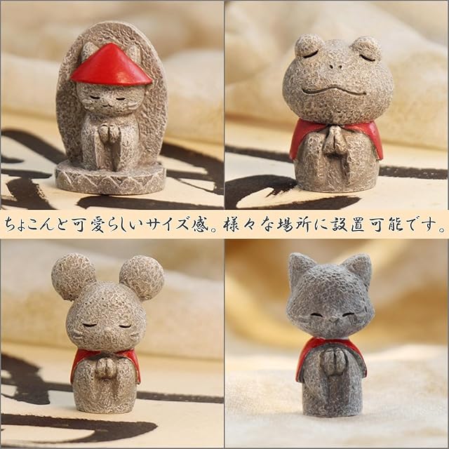 優しい表情で手を合わせる動物をモチーフにしたミニ地蔵です。犬、カエル、ネズミ、きつねの4種類からお好きなデザインをお選びいただけます。 手の平にちょこんと乗るかわいらしいサイズ感。ミニサイズで置き場所を選ばないので様々な場所に設置可能です。スペースを気にせずちょっとした場所にも飾ることが出来ます。 身近なお守りとしてはもちろん、趣のあるインテリアとしてもオススメ◎リビングや寝室はもちろんデスク上や玄関などの小スペースにも置くことが出来ます。 水槽などに入れてアクアリウムのオーナメントにするのも◎小さいお地蔵様が優しくお魚達を見守ってくださいます。またガーデニングのオーナメントにするのもキュートです。 【サイズ:画像にてご確認お願いいたします。】【素材:樹脂】※お使いのデバイスやモニター設定または商品撮影の際の照明・日光による光の当たり具合によりカラーが実際の商品と異なって見える場合がございます。予めご了承くださいますようお願い致します。【商標登録番号:第6500459号】