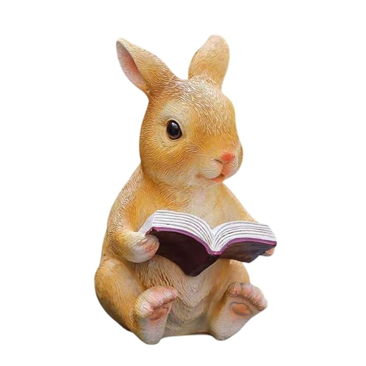 読書姿が愛らしい、うさぎ 置物。癒しのガーデニング雑貨:うさぎが本を読む姿が見る人をほっこりさせるデザインのガーデンオブジェです。花壇や玄関先、ベランダに置くだけで、お庭が癒しと楽しさで満たされます。