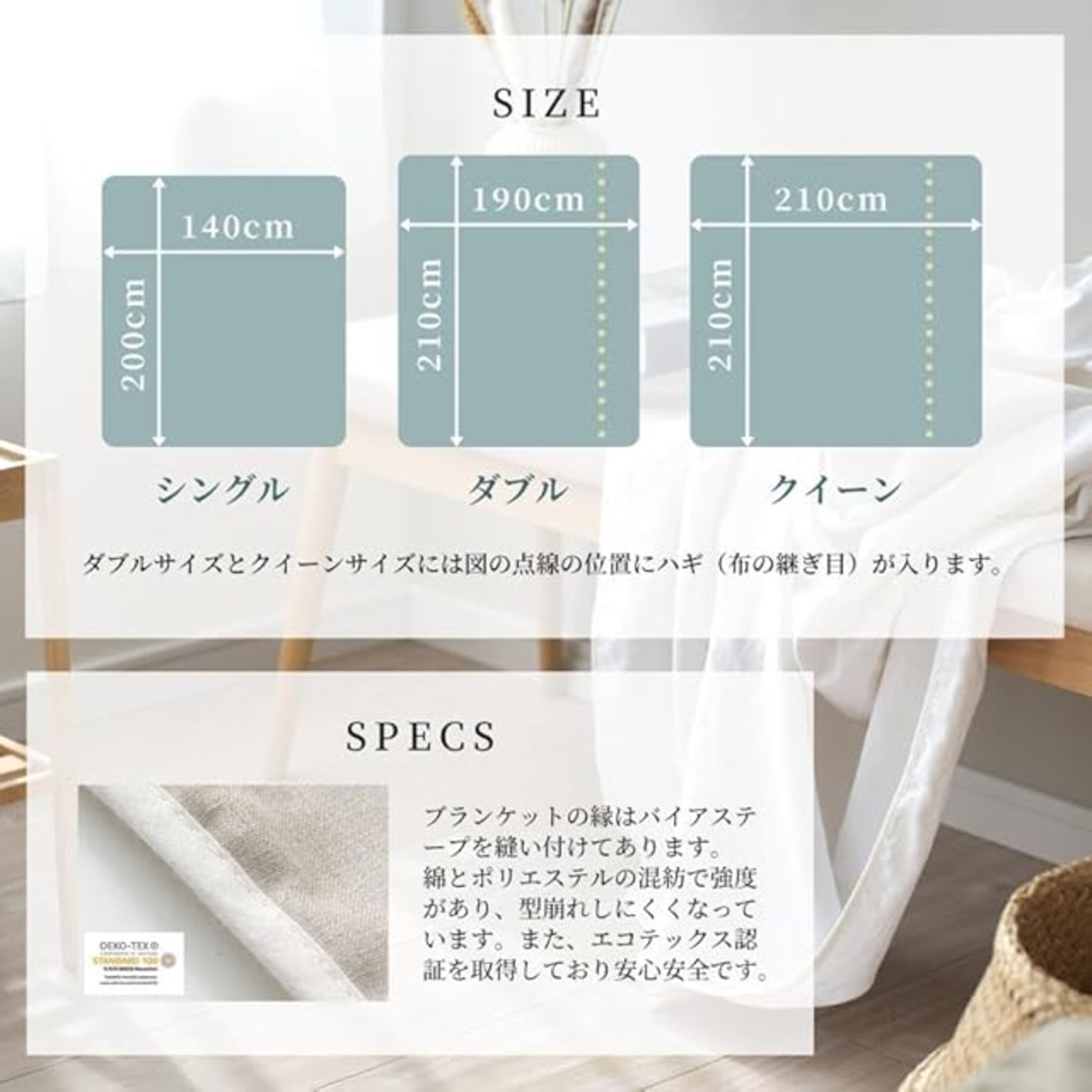 【仕様】 ブランケット シングル 1枚、サイズ:140×200cm