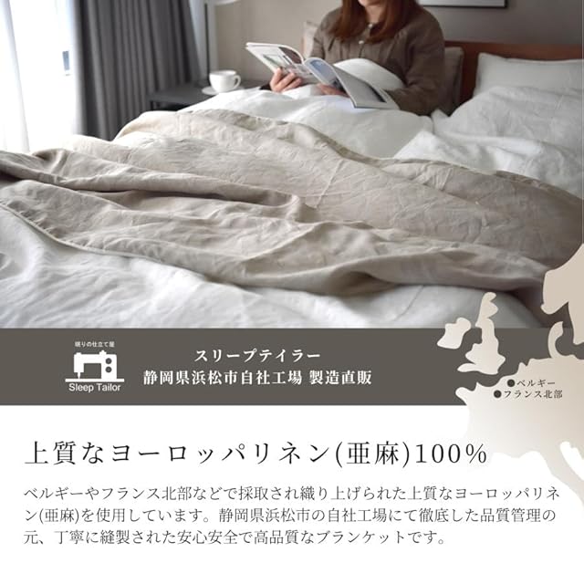 Sleep Tailor リネンケット シングル フレンチリネン100% 日本製 140×200cm 麻 北欧 洗える 抗菌 防臭 速乾 肌掛け ブランケット タオルケット 肌布団 ひざ掛け リーノ ガーゼケット (シングル(140×200cm))