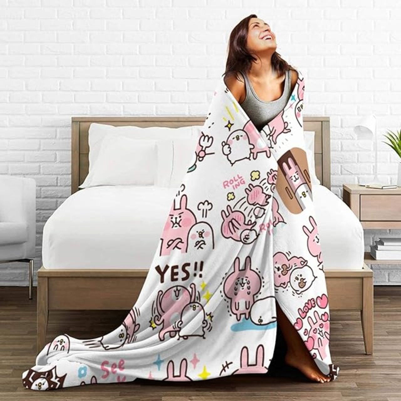 カナヘイの小動物 ブランケット フランネル柔らかいふわふわ毛布シングル 防ダニ 抗菌 防臭軽量掛け毛布 おしゃれ大判洗える冷房対策防寒暖かいひざ掛けブランケット オールシーズン。長さ125cm×幅さ100cm