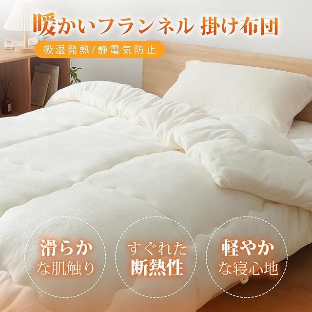 クモリ(Kumori) 掛け布団 シングル 冬用 「極暖シリーズ」 両面フランネル 暖かい 持続温感 2.65kg 厚手 ふんわり あったか 高機能中綿 蓄熱吸湿 ほこりが出にくい 保温 静電気防止 軽量 洗濯可能 掛けふとん 150X210cm アイボリー