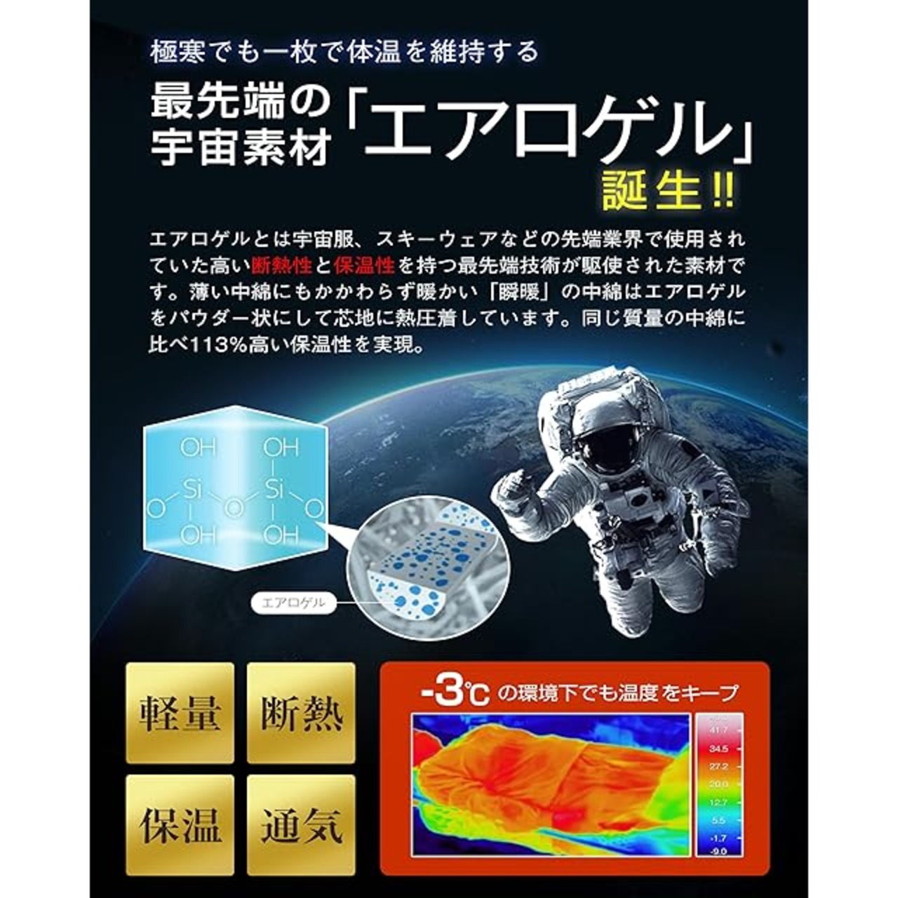 『2つの最先端テクノロジーで誕生、未来のあったか毛布』「21世紀に革命を起こす素材」として知られる「エアロゲル」は、宇宙服にも使用されている圧倒的な「断熱性」「軽量性」「通気性」「柔軟性」「耐久性」を誇る素材です。また、「次世代の夢のような素材」と称されるコーヒーファイバーは、天然の「吸湿発熱」「蓄熱保温」「遠赤外発熱」「永久消臭」の特性を持ち、環境にもやさしい素材です。これら2つの最先端素材を「毛布 冬用」に使用し、究極の暖かさと快適さを実現しました。私たちにとっては小さな一歩かもしれませんが、寝具(エアロゲル毛布)の世界にとっては大きな前進だと確信しています。ぜひ、"極みの一枚"を体験してみてください。