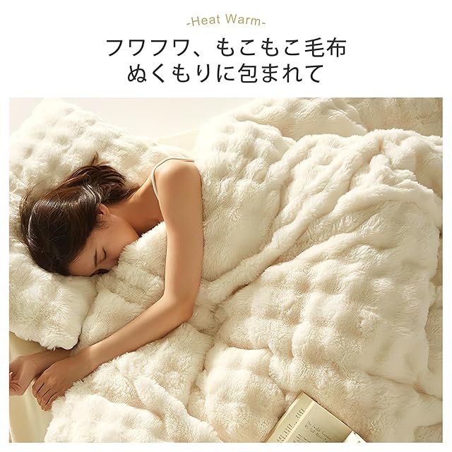 【サイズ・素材】 サイズは180*200cmで、素材にはラビットファー調のフェイクファー生地(ポリエステル100%)を使用。肌に触れるたびに感じる贅沢な柔らかさで、冬の寒さを快適に乗り越えられます。