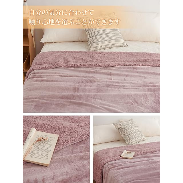 商品名:クモリ(Kumori) 2枚合わせ 厚手毛布 クイーン/キング 冬用 掛け毛布 あったか 防寒 ブランケット 吸湿発熱 抗菌防臭 静電防止 洗える 220X200cm モーブ