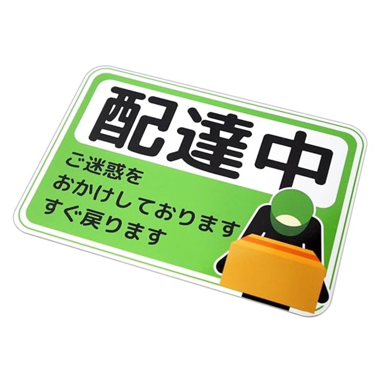 配達の駐車中に車に貼りつけることで周囲の迷惑を軽減、すぐに戻ることを周知することができます