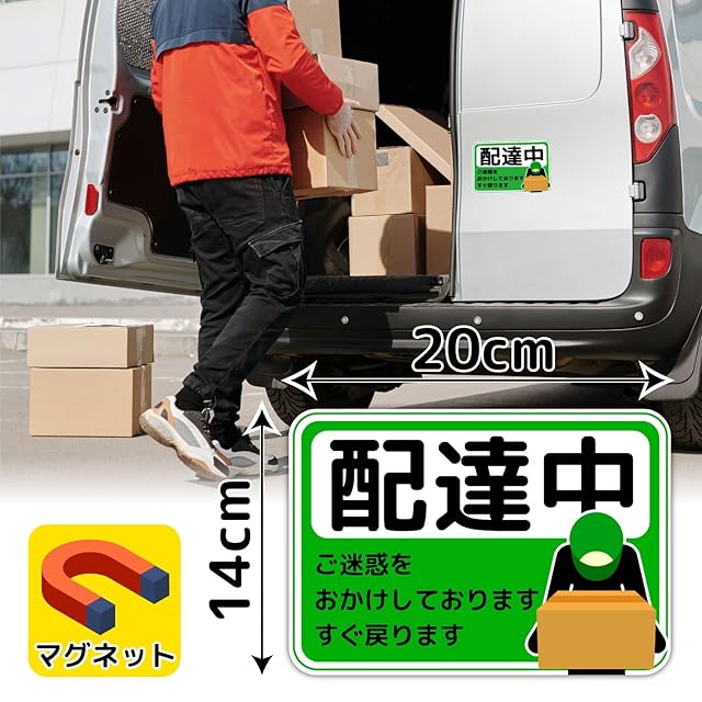 配達中の車に貼る『配達中・ご迷惑をおかけしております・すぐに戻ります』カーマグネット。必要に応じて貼ったり剝がしたり付けはずし簡単。すぐに取り外せます
